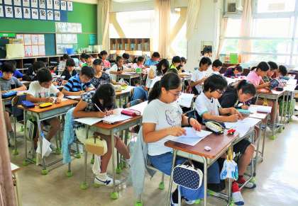 砧小学校では基礎学力の定着に向けて、始業前の朝学習に取り組んでいます。本日は国語で、漢字ドリルやプリントに向かい、集中して真剣に取り組んでいました。繰り返しの学習により、一人一人の基礎学力が定着するよう指導していきます。
