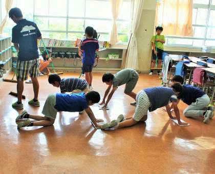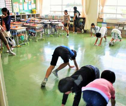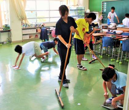 今年度の重点目標の一つとしての実践ですが、古い校舎をいつまでもピカピカにして使いたいと思っています。一生懸命に床を掃いたり磨くのは、子どもたちだけではありません。もちろん教師も一緒です。