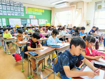 砧小学校では基礎学力の定着に向けて、始業前の朝学習に取り組んでいます。本日は、漢字ドリルや計算プリントに向かい、集中して真剣に取り組んでいました。繰り返しの学習により、一人一人の基礎学力が定着するよう指導していきます。