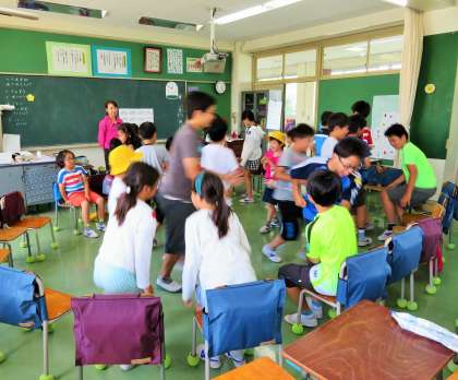 もちろんリーダーは6年生です。ゲームの説明をして、さぁゲーム開始です。どの子も楽しめるゲームを考えるのはなかなか大変なことです。