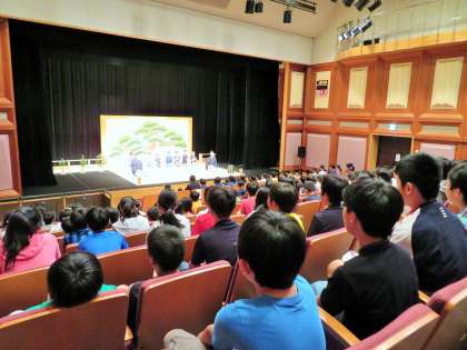 今日は6年生の古典芸能鑑賞教室が成城ホールでありました。世田谷区の独自の行事で、今年で40年目を迎えます。子どもたちは、日本の古典芸能の一つである狂言の「附子」を鑑賞しました。