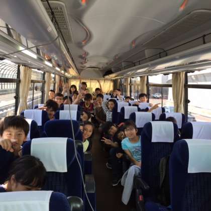 みんな元気で、クイズを出したり、歌を歌ったりしながらバスレクを楽しんでいます。もうすぐ川場です!