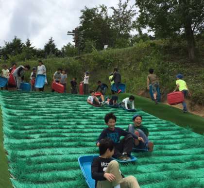 田園プラザのちびっこゲレンデやプレイゾーンで元気よく遊んでいます。私も汗びっしょりです。