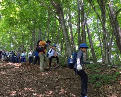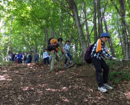 ロープを捕まるような急な斜面もありましたが無事に下山しました。6時間に及ぶ鉱石山登山でしたが、励まし合いながら全員よくがんばりました!
