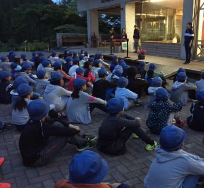 子どもたちが楽しみにしている里山ナイトプログラムに出かけました。月明かりだけの真っ暗な中を歩きました。空を見上げると、プラネタリウムのように星がいっぱいです。