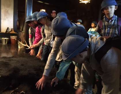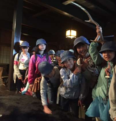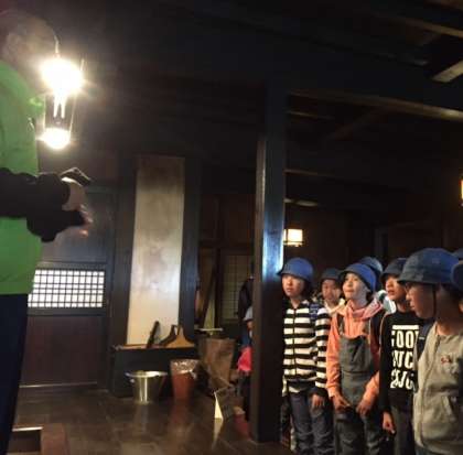 村めぐりは、担任の先生の説明を聞きながら、クラス毎にまわっています。途中の古民家などで見学をしました。