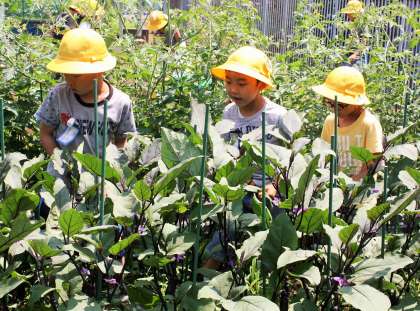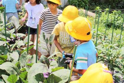 7/3 1・3年生ナスの収穫−1