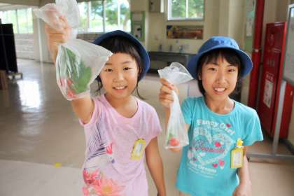3年生が育てているミニトマトの実が、次々と食べ頃に育っています。真っ赤なおいしそうなミニトマトです。子どもたちが嬉しそうに見せに来ました。自分が育てた物を大切に持ち帰り食べてみることは大切な教育の一つです。