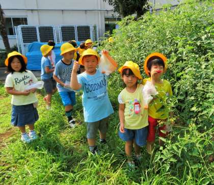 1年生が育てているミニトマトの実が、次々と食べ頃に育っています。真っ赤なおいしそうなミニトマトです。子どもたちが嬉しそうに見せに来ました。自分が育てた物を大切に持ち帰り食べてみることは大切な教育の一つです。