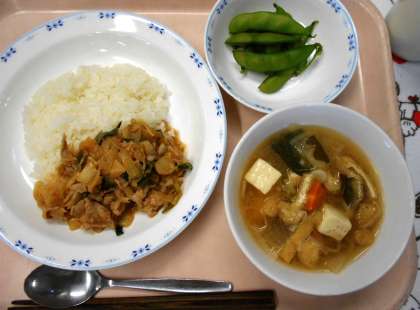 今日の給食の副菜は、<えだまめ>です。今日のえだまめは、世田谷区宇奈根の海老澤さんが心をこめて育ててくれたものです。そのえだまめを1年生が一生懸命にさやもぎしてくれました。どの学級でも、おかわりの行列ができ、「1年生が頑張ってさやもぎしてくれたえだまめは、やっぱりおいしい。」と喜んで食べていました。