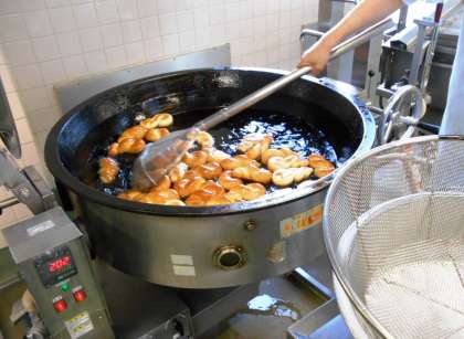 高温の油で1〜2分間さっと揚げると、外はカラッと、中はふんわりのおいしい揚げパンができます。ご家庭でも、ぜひ作ってみてください。