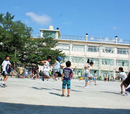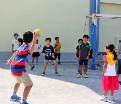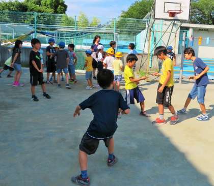 砧小学校の特色ある活動の一つとして、思いやりの気持ちをさらに向上させるための活動です。一つの班に1年生から6年生までが入って縦割りの集団で遊んだり、給食を食べたりします。