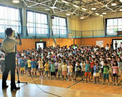 明日から夏休みに入りますが、交通事故の未然防止と、自転車でのヘルメット着用について話をしました。大きな事故なく、9月1日にいっそう逞しくなった子どもたちに会えるのを楽しみにしています。