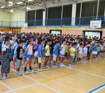 1学期の終業式の日を迎えました。何よりも子どもたちが、元気で健康に過ごせましたことに心より感謝申し上げます。終業式に並んでいる子どもたちは4月から大きく成長しました。