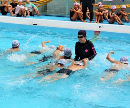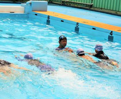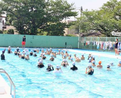今日から夏季水泳教室が始まりました。初日は、231名の子どもたちが練習に来ました。砧小学校の夏季水泳教室は、泳力別に基礎からしっかりと指導していきますので、毎日来ているとぐんぐん上達します。