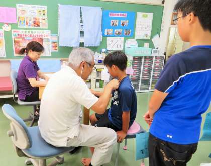 今日は6年生が、明日からの日光林間学園に備えて事前健診です。夏休みに入って10日が過ぎましたが、全員で行けることを嬉しく思います。