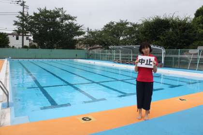 8月17日、本日の水泳教室第3回目(1・2年生)は、水温・気温が低いため中止といたします。