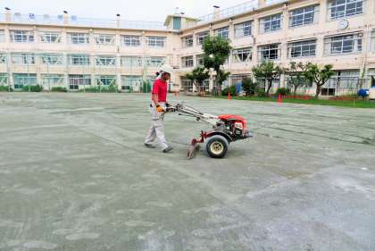 長年の使用により、でこぼこがあった校庭全体を一度掘り起こして、転圧し整地しました。そして校庭の側溝清掃、バスケットゴール、幼稚園門門扉の修理なども夏休み中に行い、2学期からより良い環境で教育活動が行えるよう準備を進めてきました。