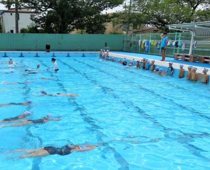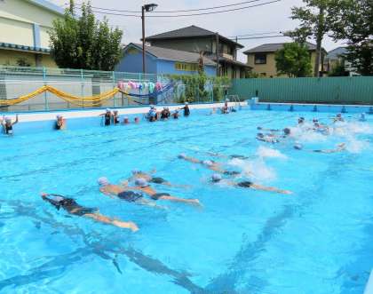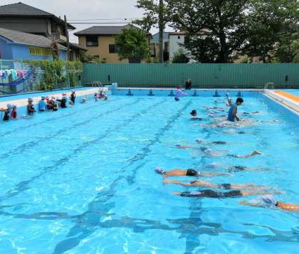 ウォーミングアップでの水遊びから、けのびで浮いたり、バタ足を加えたりする練習もしました。