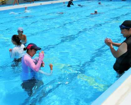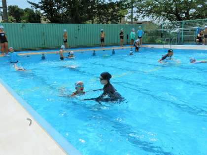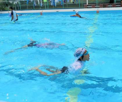 子どもたちの力泳、プチ検定で合格した子は大喜びです!