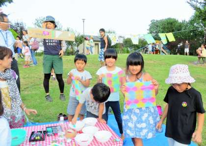 石に色を付けたり、和紙に色を付けたりして素敵な作品ができていました。袋いっぱいのプレゼントもいただきました。