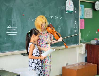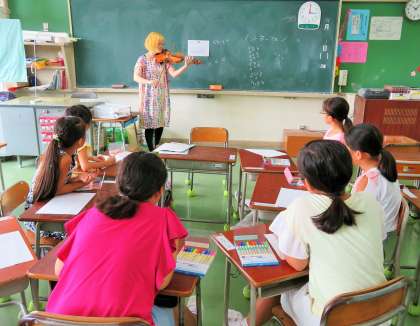 今日のサマースクール「楽器を使わない曲作り」では、身の回りの言葉や自分の名前がどんなメロディーになるかを考えました。そして、「夏休みの思い出」というテーマで、曲つくりをし、講師の鹿島先生にバイオリンで演奏していただきました。楽譜が読めなくても、楽器が演奏できなくても、音楽を楽しむことができます。音楽の楽しさを今日は教えていただきました。自分の作った曲を聴いた時の子どもたちは笑顔でした。鹿島先生、ありがとうございました。
