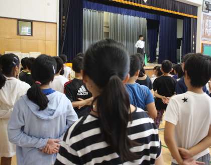 全校朝会では、先日の始業式、今日の全校朝会と開始前からお喋りをしないで、しっかりとした姿勢で話を聞く態度ができていたことを褒めました。一人一人が、真剣に臨もうという気持ちをもっていたからこその姿です。