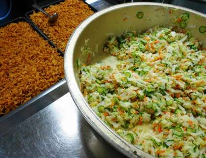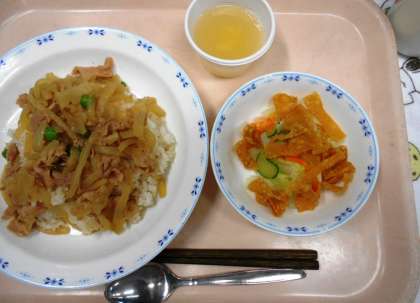 今日は、5・6年生の水泳記録会応援メニューです。スタミナをつける豚肉を使った<豚丼>と、緊張を和らげるやさしい甘さの<りんごゼリー>を作りました。ぜひ、今までの練習の成果を発揮してほしいと思います。