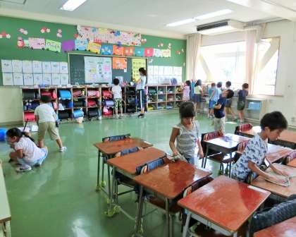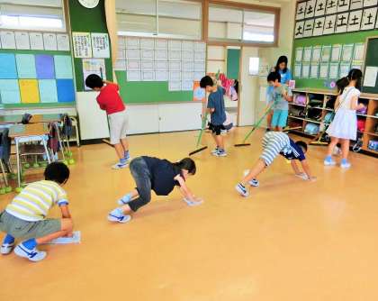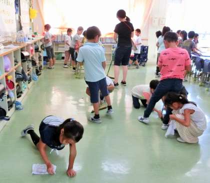 1年生、2年生は無駄なおしゃべりをしないで掃除ができています。3年生はおしゃべりをしないで掃除ができています。