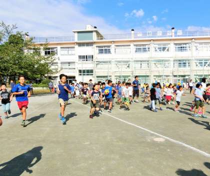 今日から13日まで、2学期の学校公開がはじまりました。子どもたちは登校後、ワクワクの朝遊び、そして朝ランニングで体を動かし、脳をしっかり目覚めさせてから1時間目の授業に臨みます。