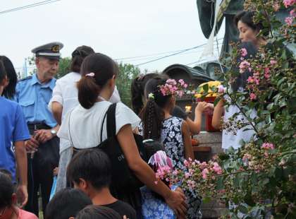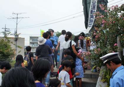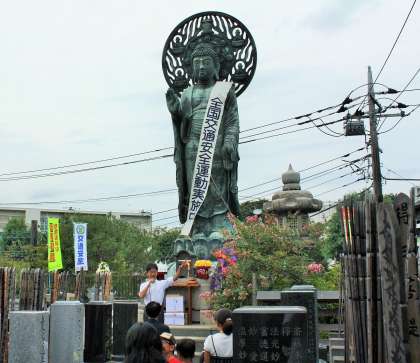 今日は、秋の交通安全祈願祭が妙法寺で執り行われました。妙法寺住職さんのご祈祷から始まり、成城警察署、安全協会、町会の方々から交通事故ゼロに向けたお言葉をいただきました。子どもたちや保護者の皆様など、100名を超える方々が一堂に会し、交通事故防止へ決意を新たにしました。
