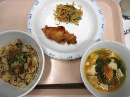 教室をまわっていると、「ひじきごはんは苦手だと思ったけど、一口食べてみたらおいしくて好きになりました。」と話してくれた子がいました。とても嬉しく思います。