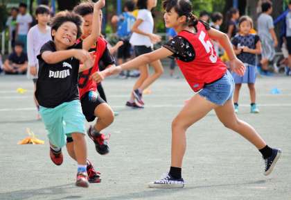 砧小学校の特色ある活動の一つとして、思いやりの気持ちをさらに向上させるための活動です。一つの班に1年生から6年生までが入って縦割りの集団で遊んだり、給食を食べたりします。