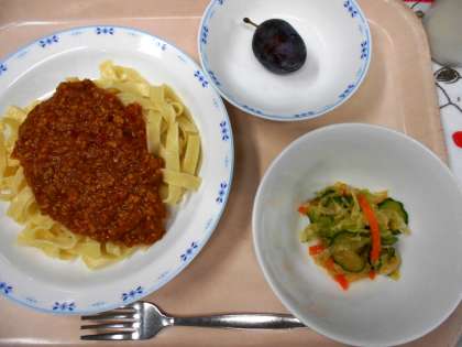 また、生パスタのフェットチーネを砧小では初めて使いましたが、「このパスタは、何という名前なんですか?」「おいしそう!」と話しにきた子がいました。これからも、子どもたちがワクワク・ドキドキするような給食を作っていきたいと思います。