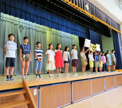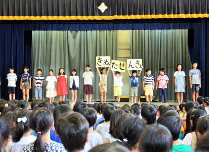 最後に代表委員会から、砧小学校創立115周年記念航空写真のデザイン画を子どもたちの投票によって決めたい、その名も「きぬたせんきょ」についての説明がありました。