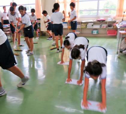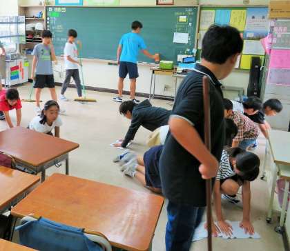 一生懸命に床を掃いたり磨くのは、子どもたちだけではありません。もちろん教師も一緒です!