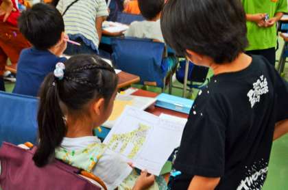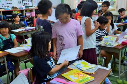 2年生は遠足に向けて動物調べをして、1年生へのメッセージを添えて「動物カード」を1年生にプレゼントしました。