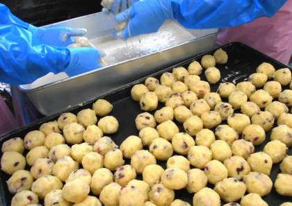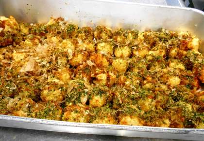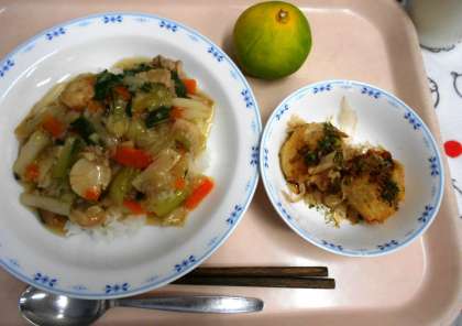 今週は、読書週間です。読書週間にあわせて、<おはなし給食>を作りました。今日のおはなしは、絵本「たこやきのたこさぶろう」です。給食室では、じゃがいもを蒸してつぶし、ねぎやたこ・紅しょうがを混ぜて丸め、小麦粉と水をあわせたものにくぐらせ、油で揚げて<たこさぶろうのたこやきポテト>を作りました。どの学級も大好評で、「たこやきポテトがおいしかったです。また食べたいです!」という声が多く、大変嬉しく思います。