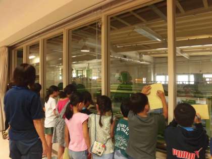 資源循環センター「リセタ」では、ガラス瓶をリサイクルするための工程と再利用について学習しました。