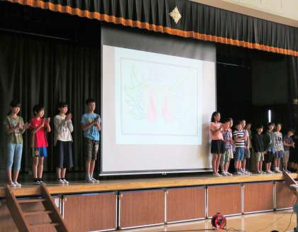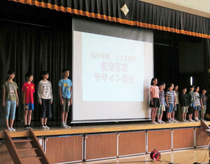 最後に代表委員会から、砧小学校創立115周年記念航空写真のデザイン画が、子どもたちの投票によって決まったことの報告がありました。