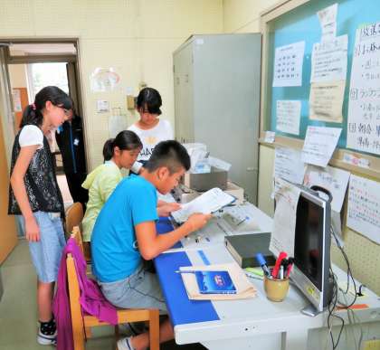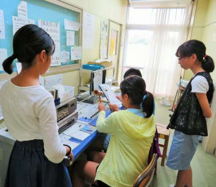 今日の給食時間の「お昼の放送」は6年生放送委員さんが担当です。前期の委員さんが引継ぎを兼ねて丁寧に教えています。砧小学校のお昼の放送は、必ず「砧ニュース」(今日の出来事とその感想など)が語られ、その後に素敵な曲が流れます。素朴で私は大好きな放送です。