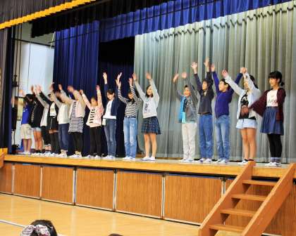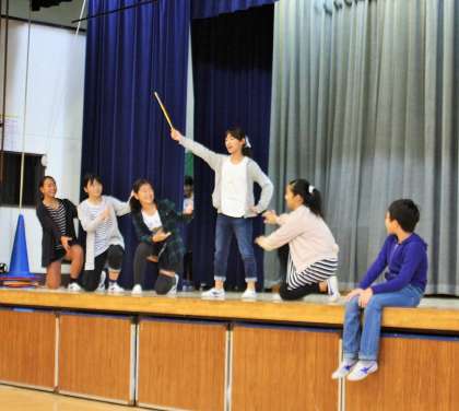 今日のなかよし班ロング集会は「作って遊ぼう砧っ子ランド」です。前回、それぞれのなかよし班(たてわり班)で考えたものを作って遊びます。まずは、各教室の代表の6年生が、寸劇を交えながら「作って遊ぼう砧っ子ランド」に臨む姿勢を全校に向けて発表しました。