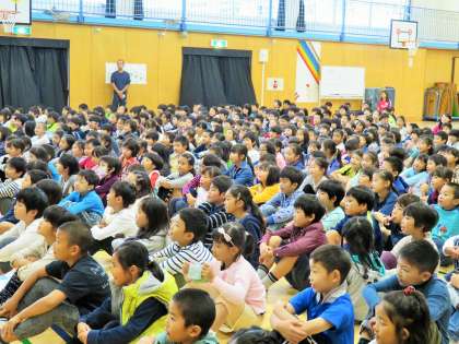 ステージ上の劇を観ていた子どもたちは興味津々です。