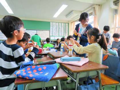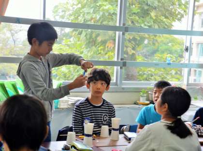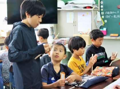 下級生に、ていねいに教えながら作っています。