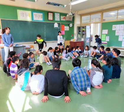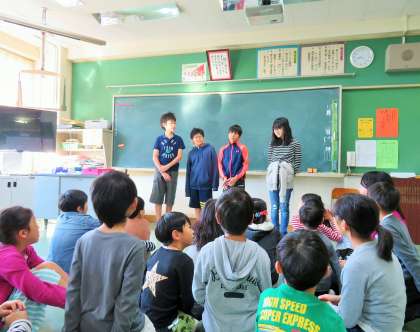 今朝の朝遊びは、縦割りの班で、6年生65人がすべて班長となる『新なかよし班活動』の実質第5回目です。昨日までの雨で、校庭が使えないため教室で遊びました。