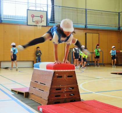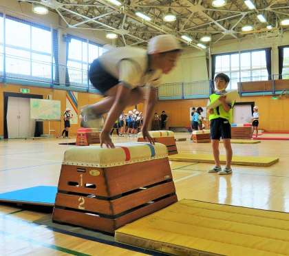 昨日の3時間目に3年生で、関谷教諭の体育研究授業がありました。器械運動領域「跳び箱」の単元で、今できる技に取り組み、安定した動作で支持跳び越しができる、友達同士でアドバイスをし合うことができるというねらいをもっての学習です。子どもたちは、一人一人が真剣で、一生懸命に学習している姿があり嬉しく思いました。