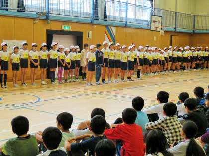 今日は、明日の24日(火)に6年生が「世田谷区立小学校連合運動会」に出場をしますので、それに向けての壮行会です。