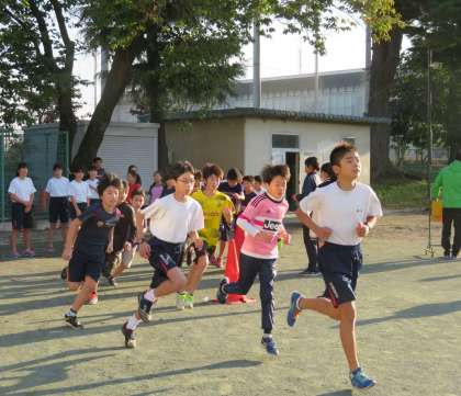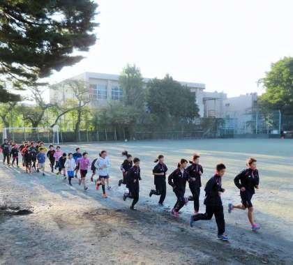今日から、「第7回世田谷子ども駅伝」(学び舎対抗駅伝)に向けての朝練習がスタートしました。砧の学び舎からは、男子2チーム、女子2チームがエントリーしています。砧中学校、砧小学校、明正小学校、山野小学校から、小学生6名、中学生4名がチームを組み、たすきリレーをします。