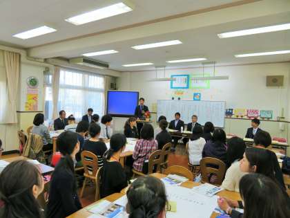 先日、砧小学校のPTA研修会がランチルームで行われました。今年度のテーマは「学び舎トークライブ 〜砧中&砧南中の校長先生をお招きして〜 」です。