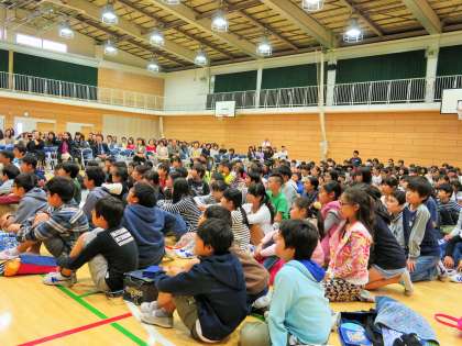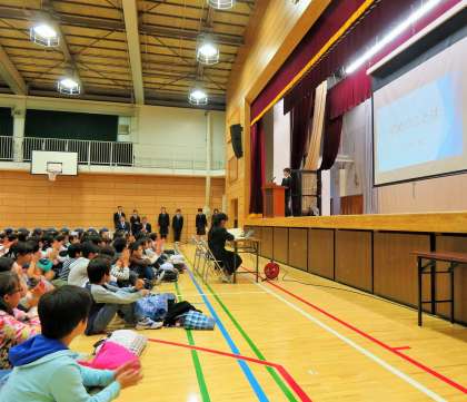 体育館では、吹奏楽部の素敵な演奏を聴かせていただきました。続いて、生徒会の皆さんによる学校紹介、そして部活動紹介がありました。
